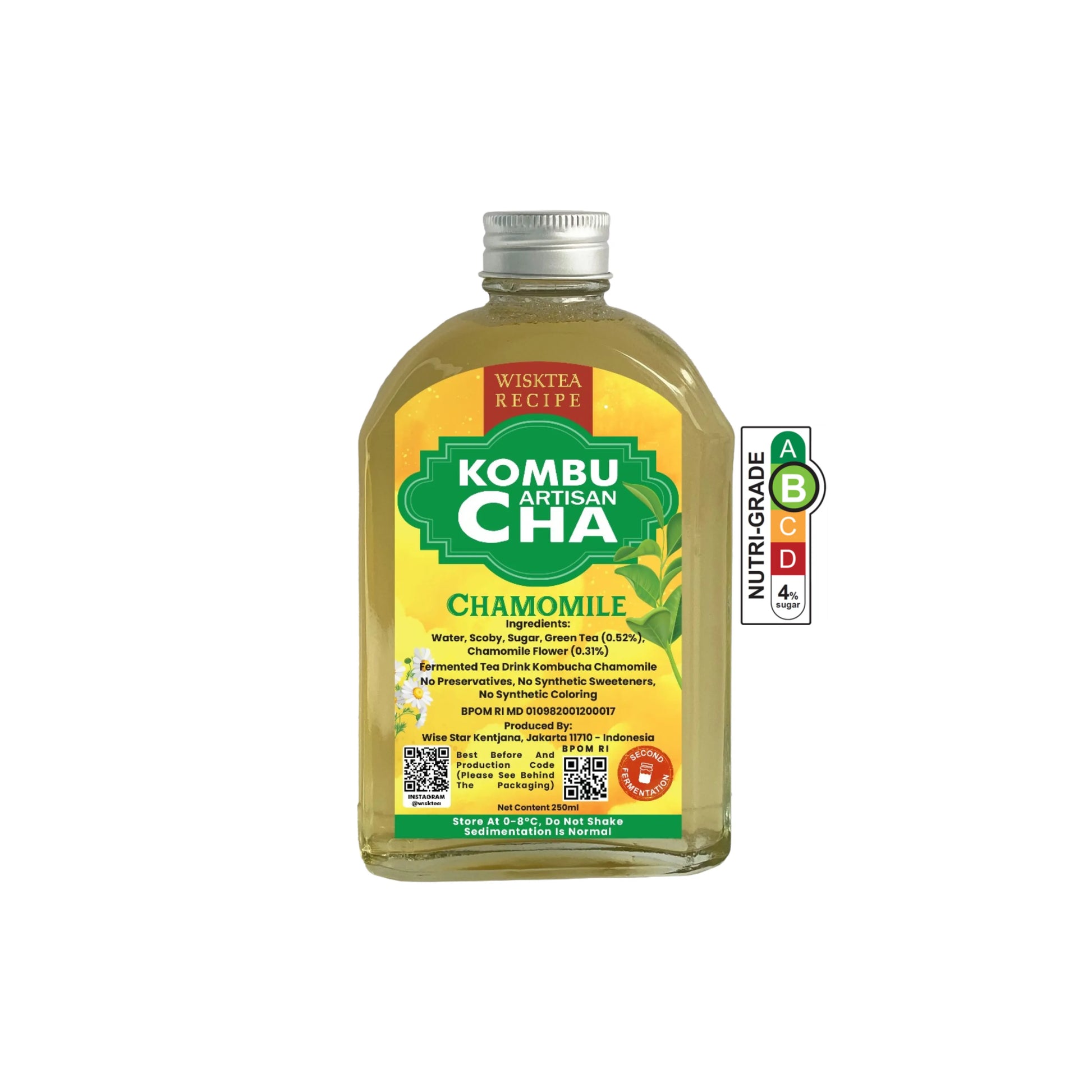 Unwind and find your calm with our exquisite Chamomile Kombucha Tea Drink, a naturally soothing and gently effervescent beverage. Crafted for moments of peace and daily well-being, this delicate kombucha harmoniously blends the crisp, clean notes of premium Green Tea with the tranquil, sweet essence of real Chamomile Flowers.