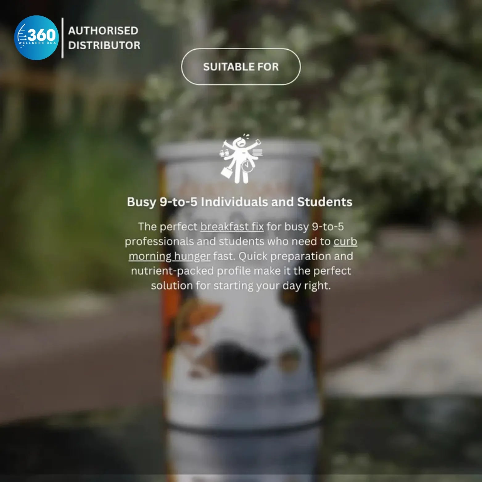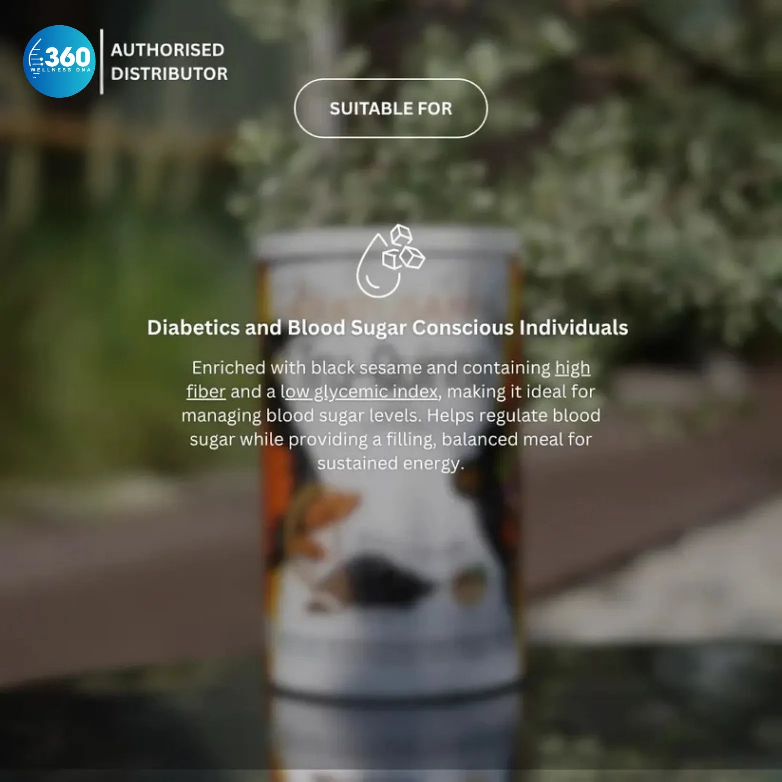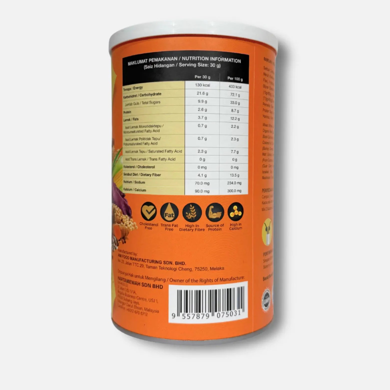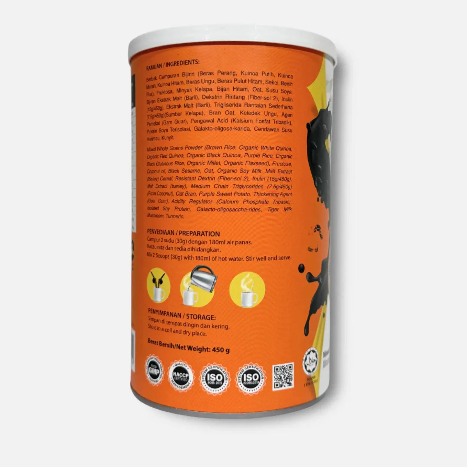 Enhance your overall health with our premium nutritional drink, expertly crafted with a combination of whole grains, seeds, and nutrient-rich superfoods. Abundant in vital nutrients and dietary fiber derived from diverse grains, it's enriched with beneficial fats from coconut oil and flaxseed to provide sustained energy release. Our formula, abundant in antioxidants and highlighted by black sesame and purple sweet potato, reinforces your body's inherent protective mechanisms. Furthermore, it's fortified with prebiotics to promote balanced and efficient digestive function. Savor the distinctive and full-bodied flavor of black sesame with each serving, providing a singular taste sensation while supporting your well-being. Opt for our nutritional beverage for a regular enhancement of vitality and comprehensive nourishment!